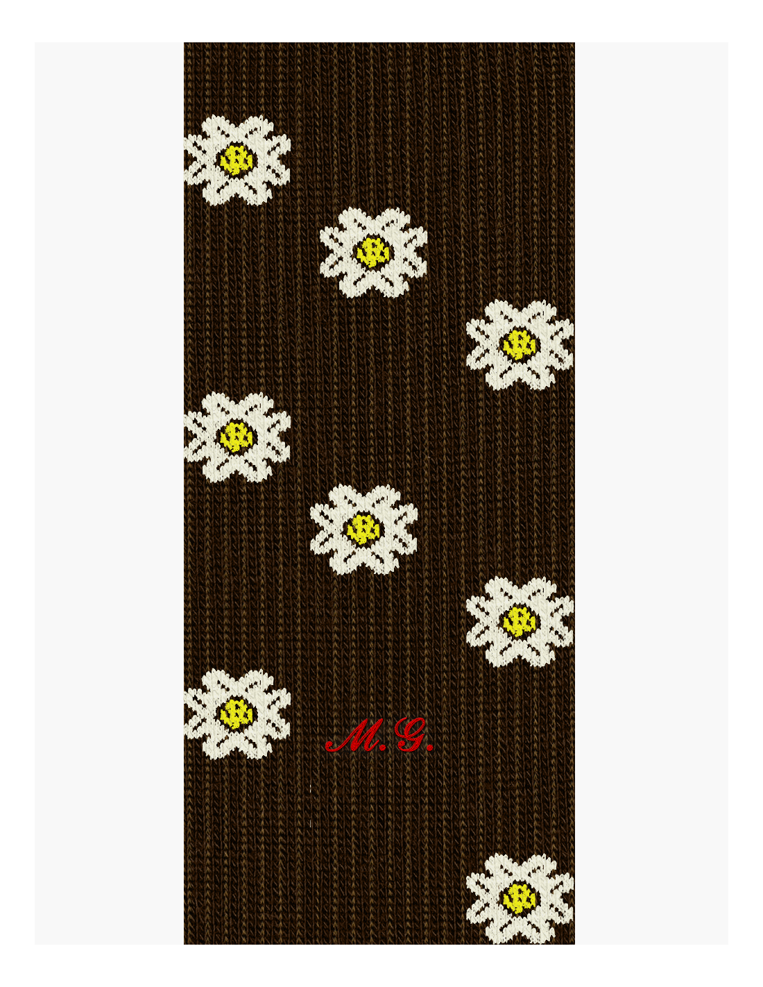 Eleganti calze in Caldo Cotone originale 100% con fantasia Margherita personalizzabile con iniziali, il ricamo delle iniziali viene effettuato solo sul calzino sinistro, all'altezza della caviglia, con particolari caratteri classici Corsivo o Stampatello in una grandezza non troppo invasiva ma percettibile.