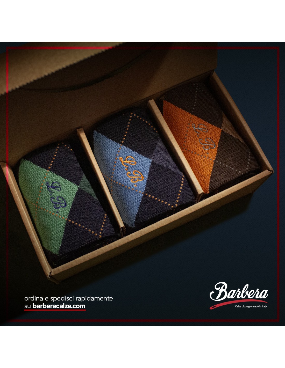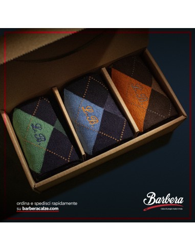 Non dimenticare di salvare la tua personalizzazione per poter riempire il carrelloCofanetto Tre Paia di Calze in Cotone CALDO con Fantasia ROMBI