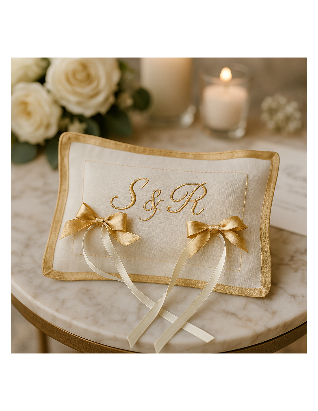 Cuscino Portafedi con iniziali in Lino - Made in Italy